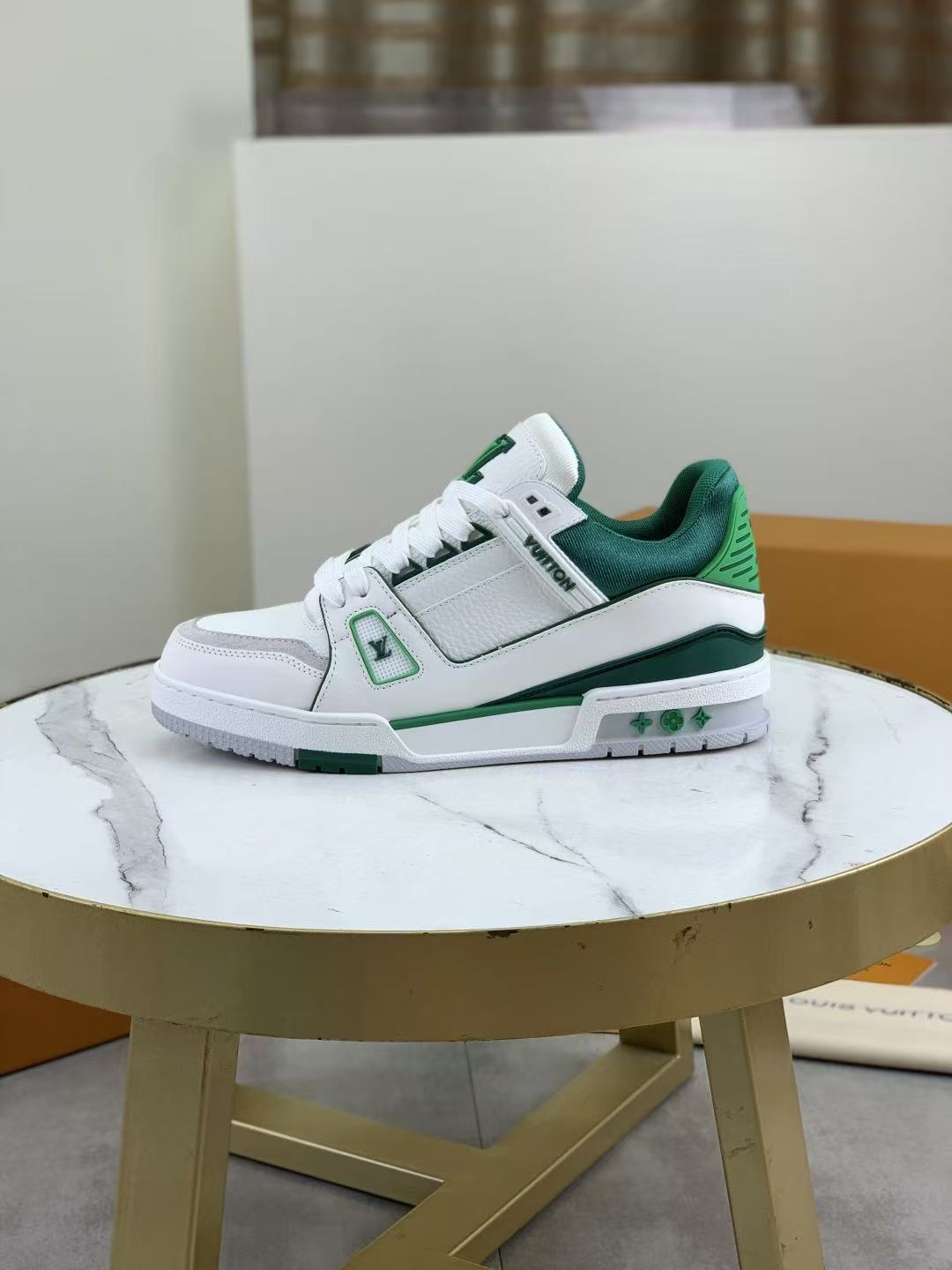 LV Trainers Green | White is now available, giving you the chance to add this to your shoe collection.